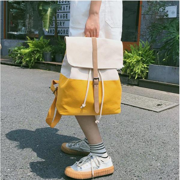 Female Korean high school students backpack academic style small fresh contrasting canvas backpack